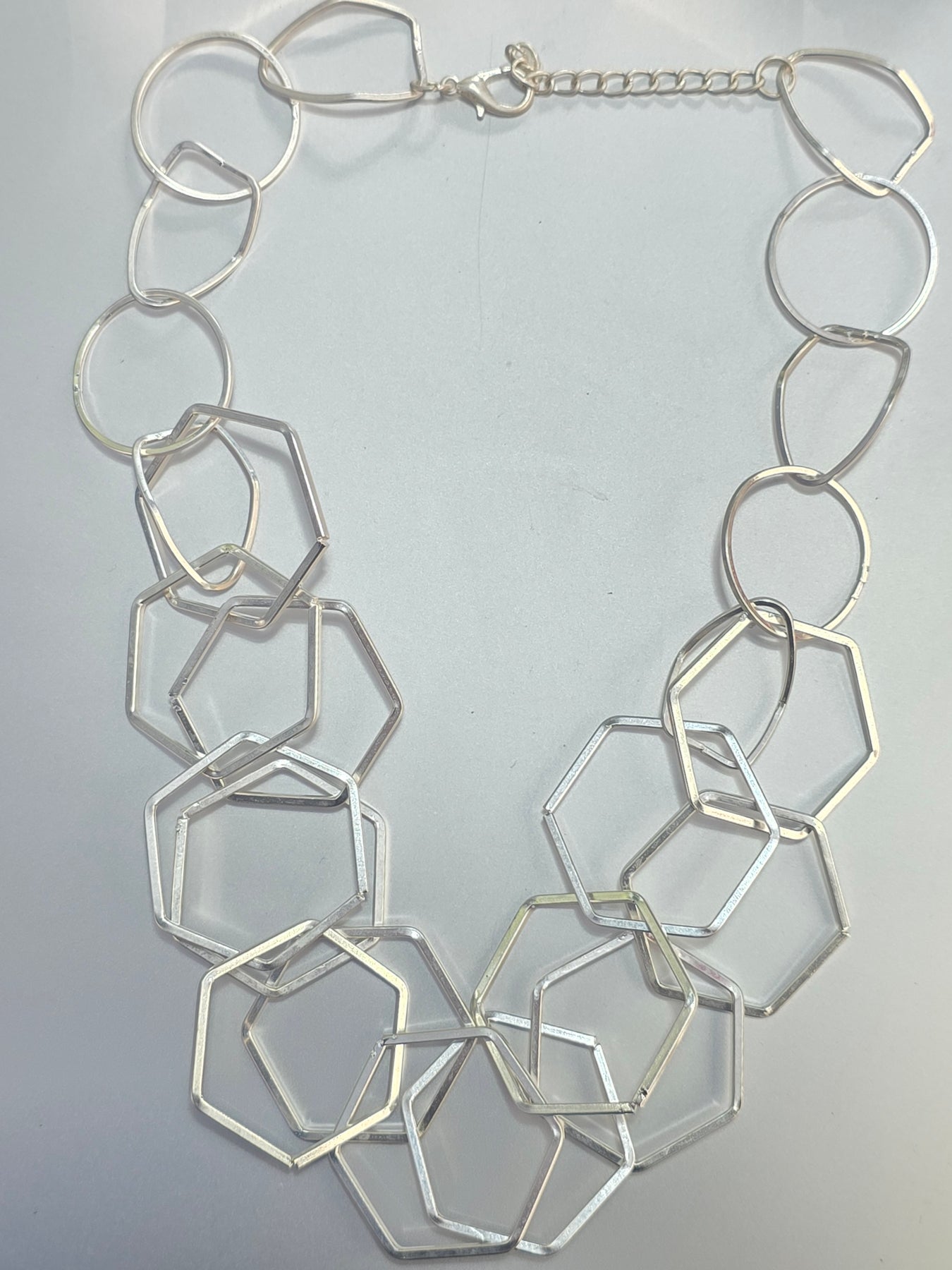 Make a bold statement with this Hexagonal Necklace featuring a unique dual line of pendants at its center. Nickel-free and adjustable at the back, it combines comfort with style effortlessly. Designed to add a fun yet commanding edge to any outfit, this necklace helps you feel confident and in control wherever you go.